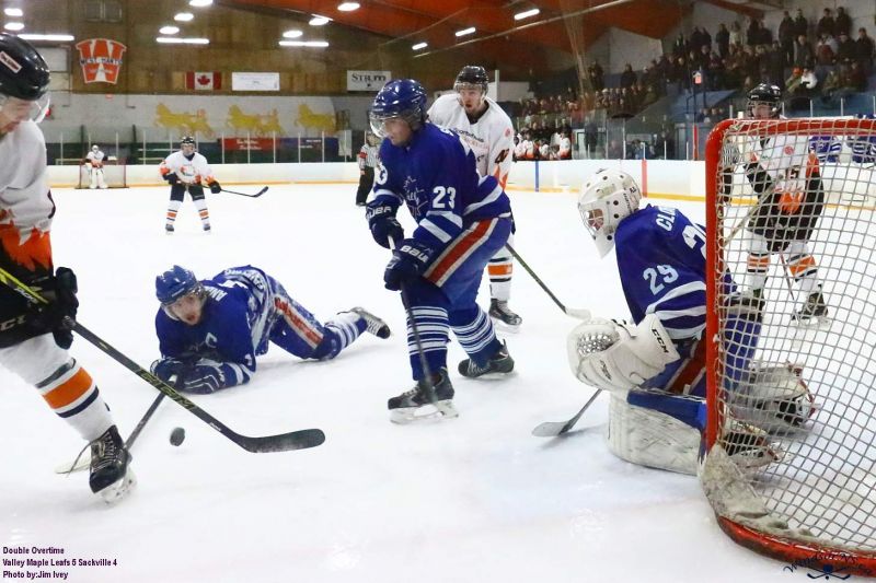 IMG_1824.JPG_ModIn a back and forth game with plenty of opportunities, the Valley Maple Leafs were able to secure a victory to tie the series with the Sackville Blazers at 2 games each. Valley was victorious in the game early into the second period of overtime with the winner coming from Dylan Riley. More details will follow.