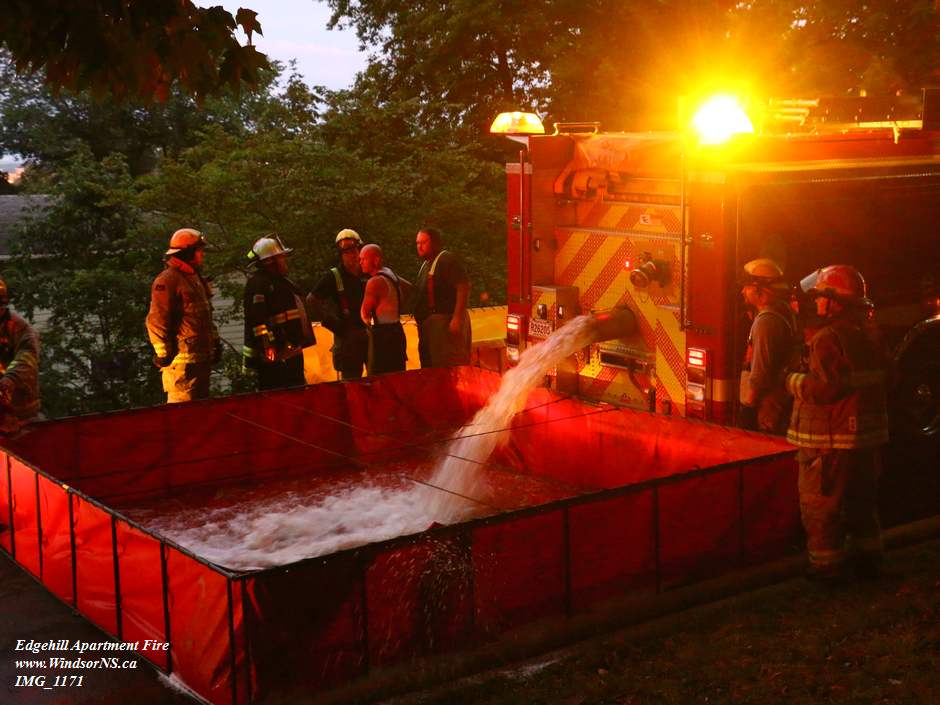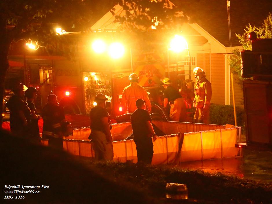 Almost immediately thereafter the sounds of fire engine sirens began cutting through the din of the pounding rain. As they raced to the site the sirens whined into the night. Water support was drawn from the lake and transported to the seemingly unstoppable fire that kept the fire fighters on-site throughout the night.
