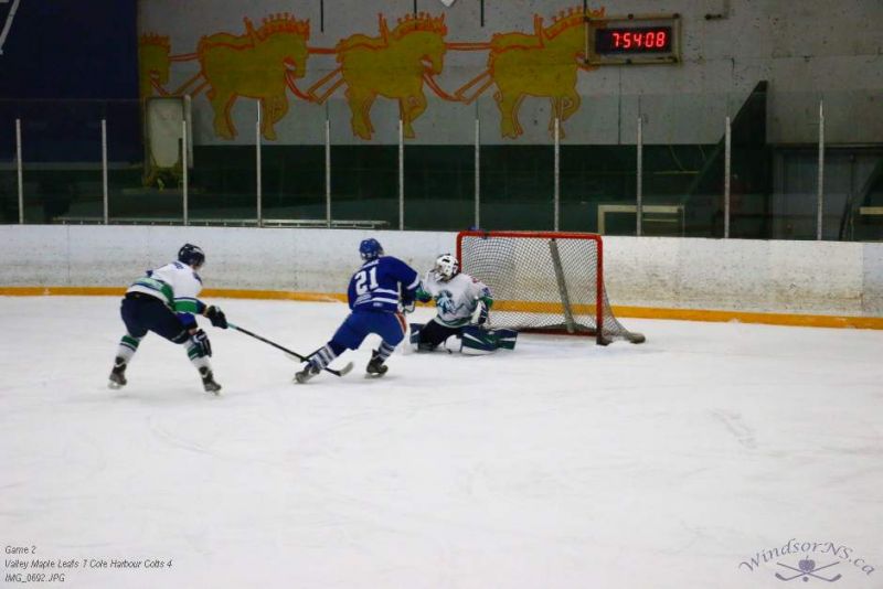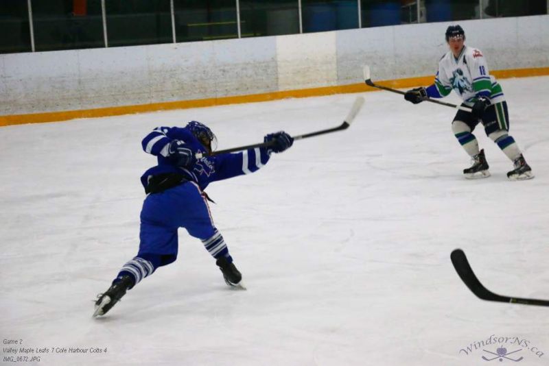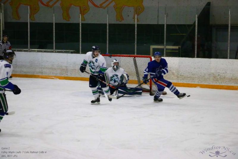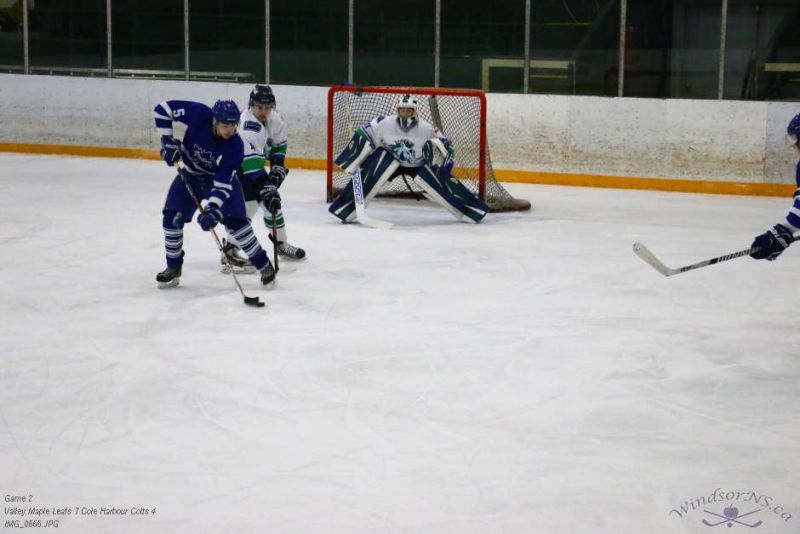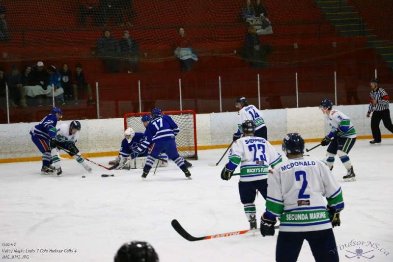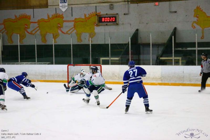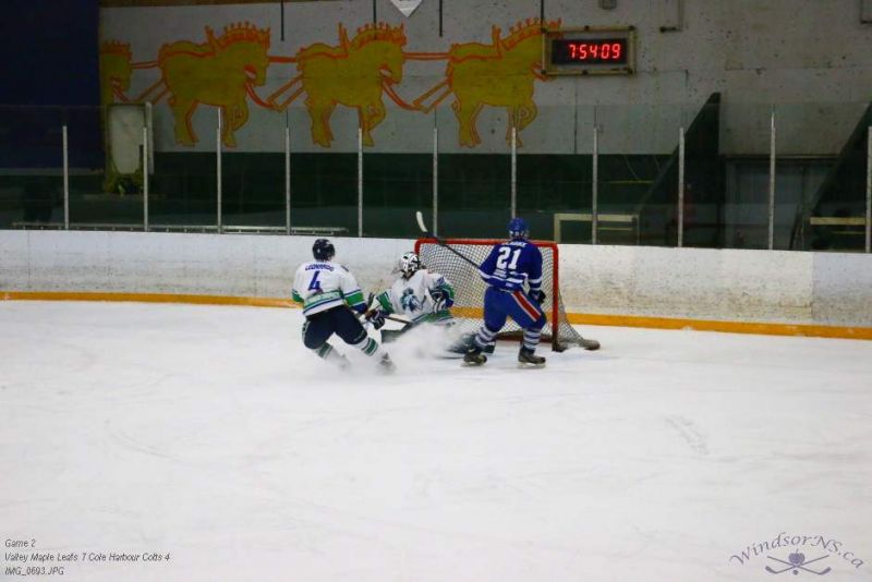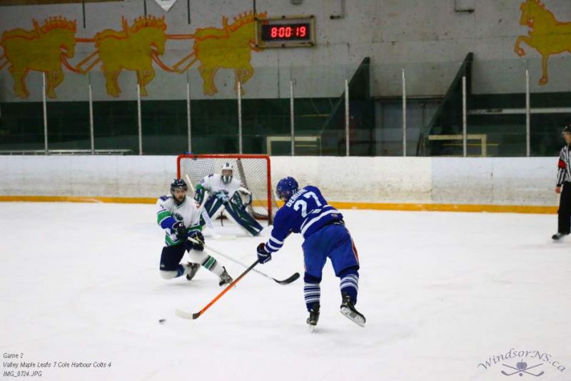 From the game in Windsor Feb 26, the Vally Maple Leafs were victorious over the Cole Harbour Colts by a score of 7 to 4. It was great action throughout the game with plenty of opportunities for both sides.