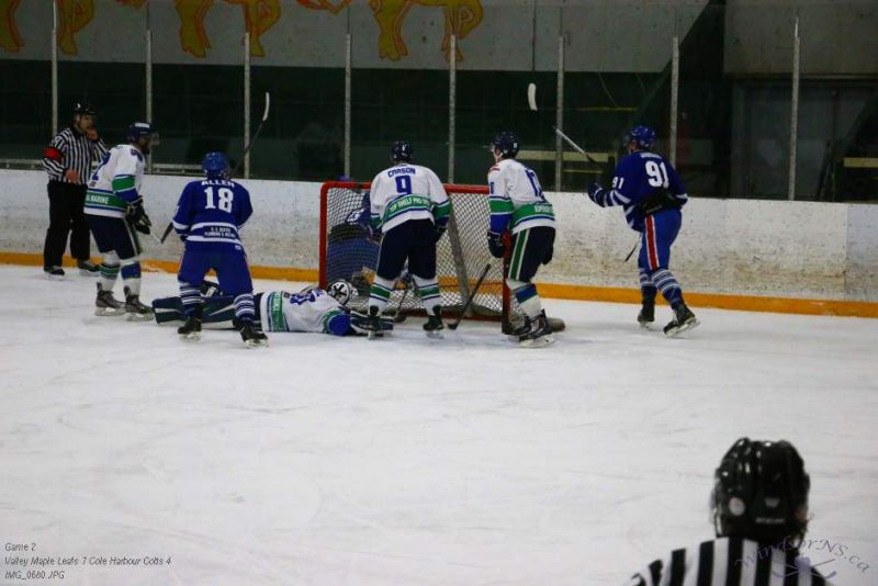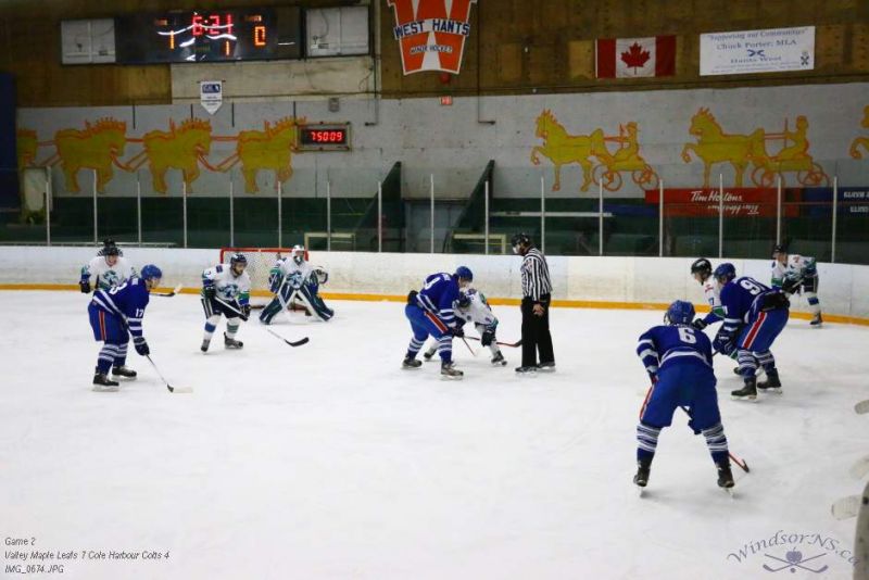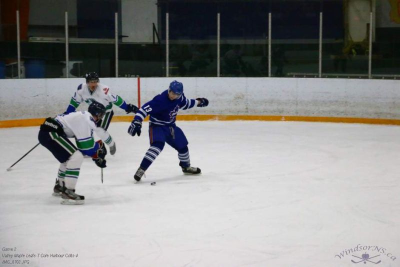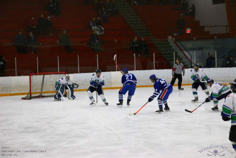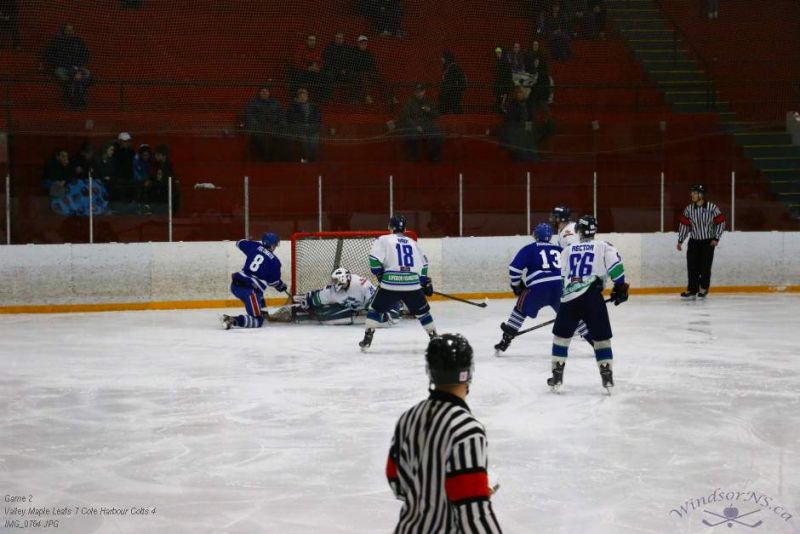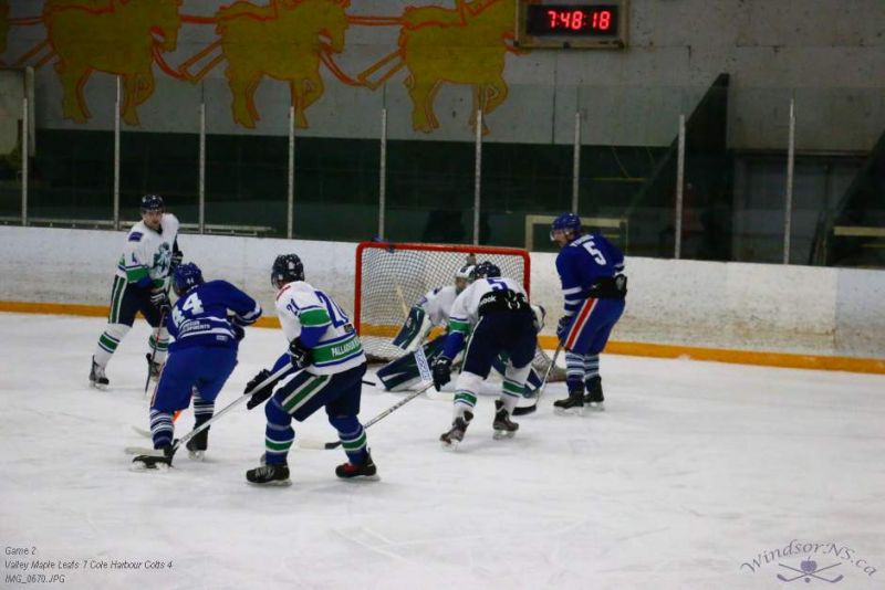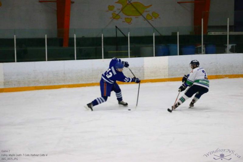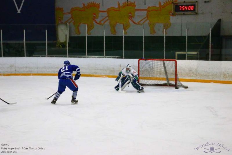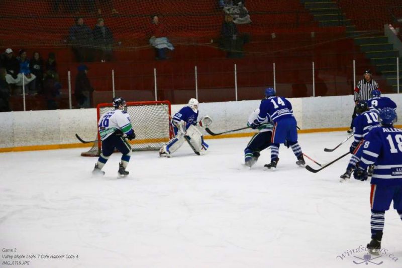 From the game in Windsor Feb 26, the Vally Maple Leafs were victorious over the Cole Harbour Colts by a score of 7 to 4. It was great action throughout the game with plenty of opportunities for both sides.