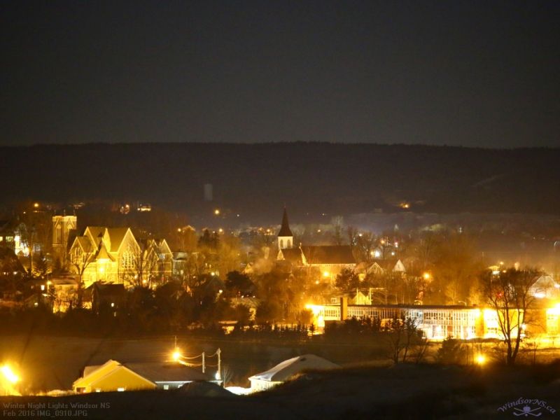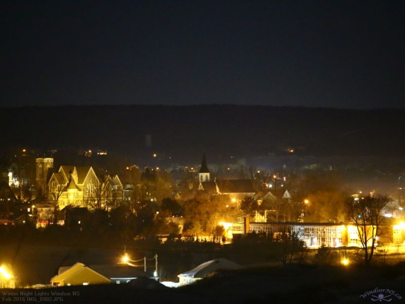 An images selection of local landmarks in Windsor NS. The night’s lights around town include the former Edgehill School for Girls, United Church & Christ Anglican Church along King St, Fort Edward the oldest blockhouse in North America and the former Windsor Vocational School.