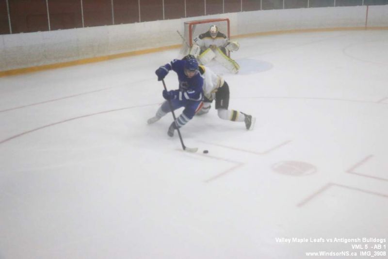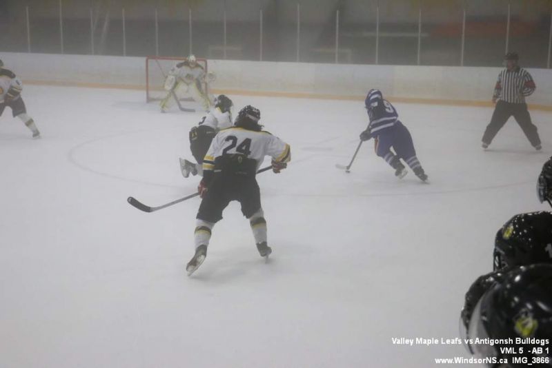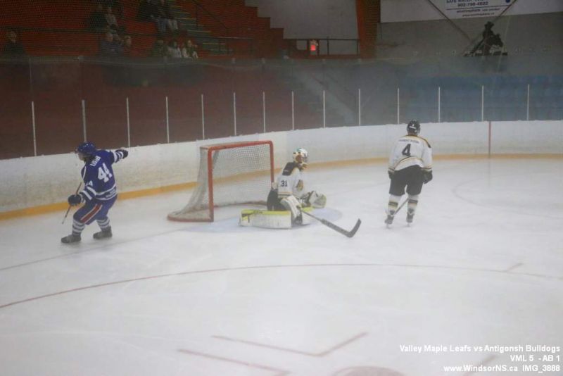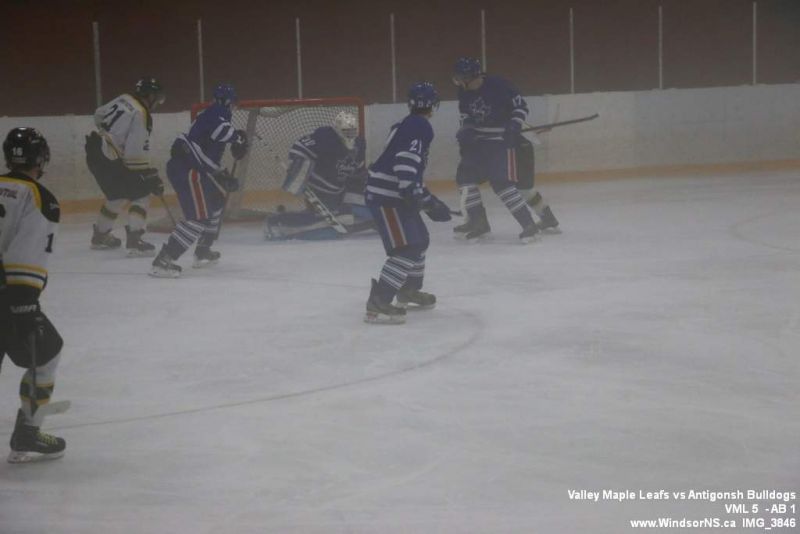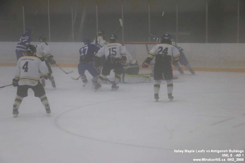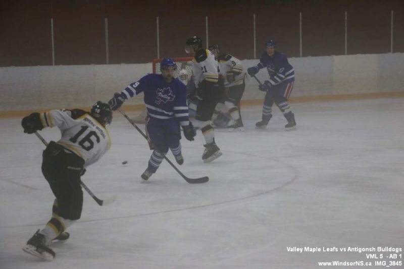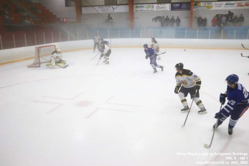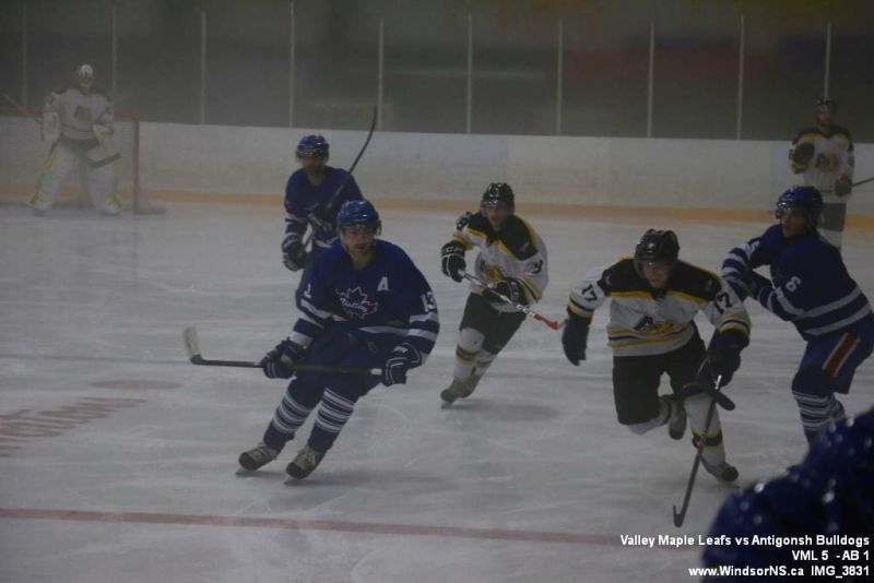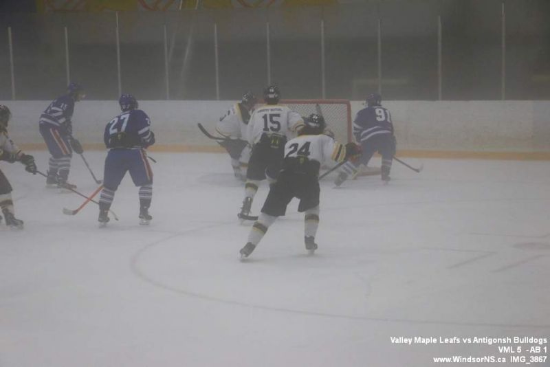 Nov 6, 2015, Windsor NS Valley Maple Leafs were victorious Friday night in a game at home against the Antigonish Bulldogs. With fog covering the ice throughout the game it was difficult to follow the puck. Valley Maple Leafs (5) took the win over the Antigonish Bulldogs (1).