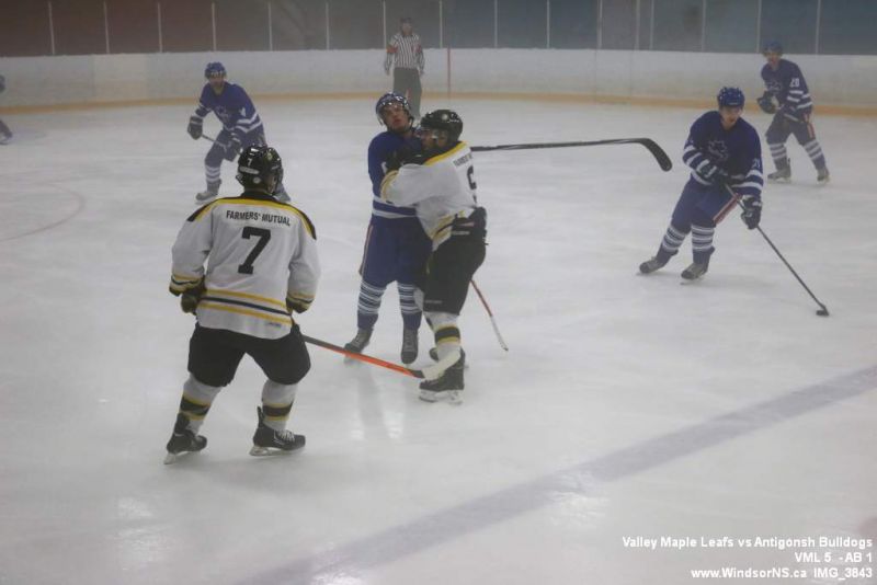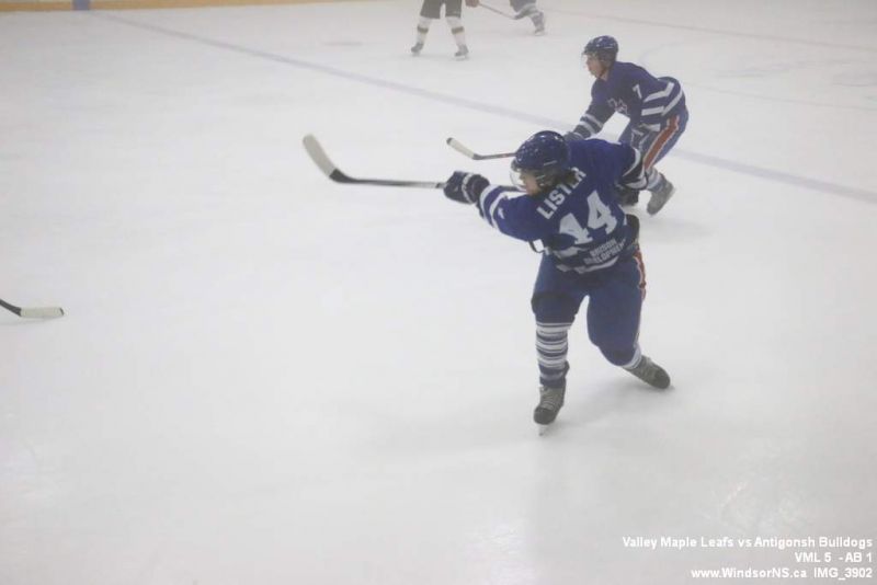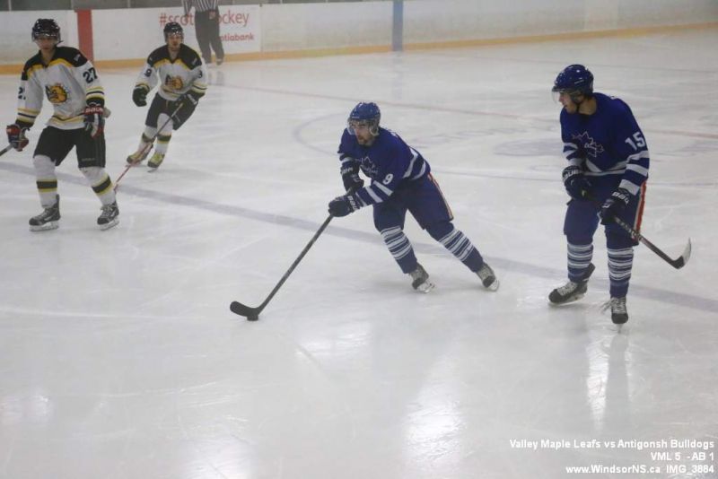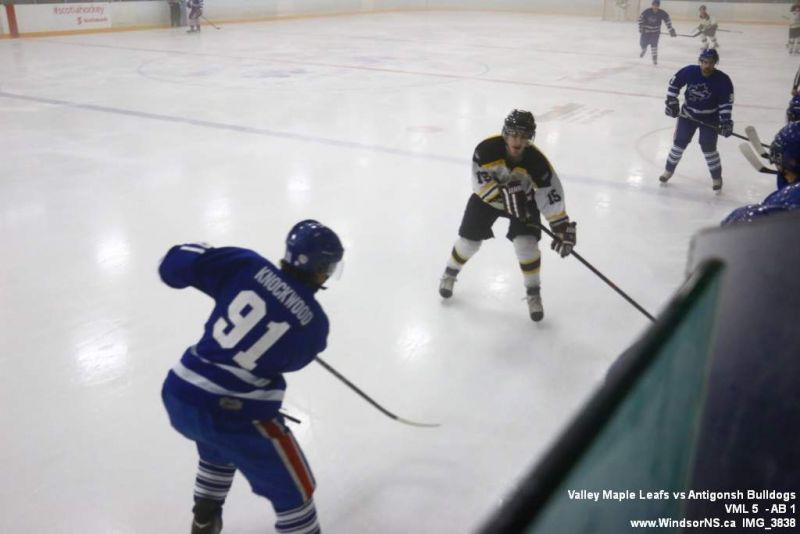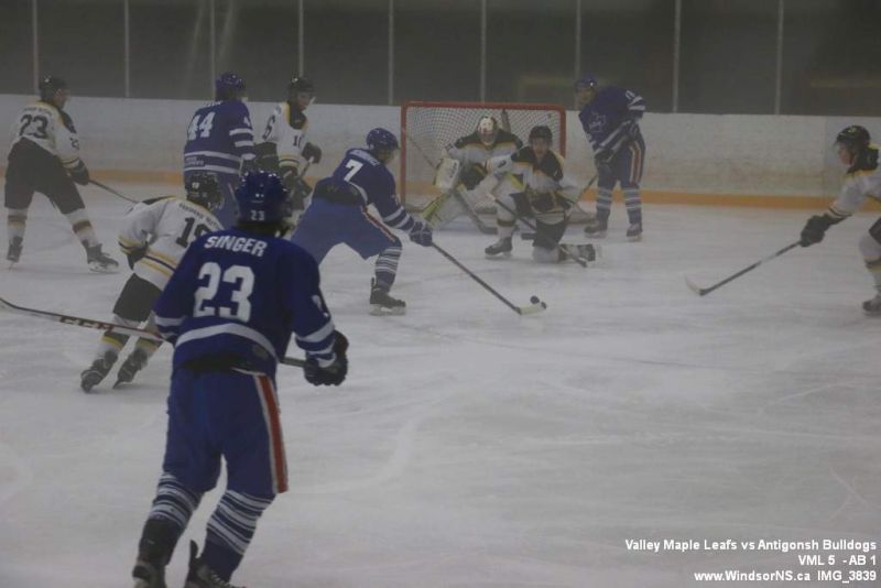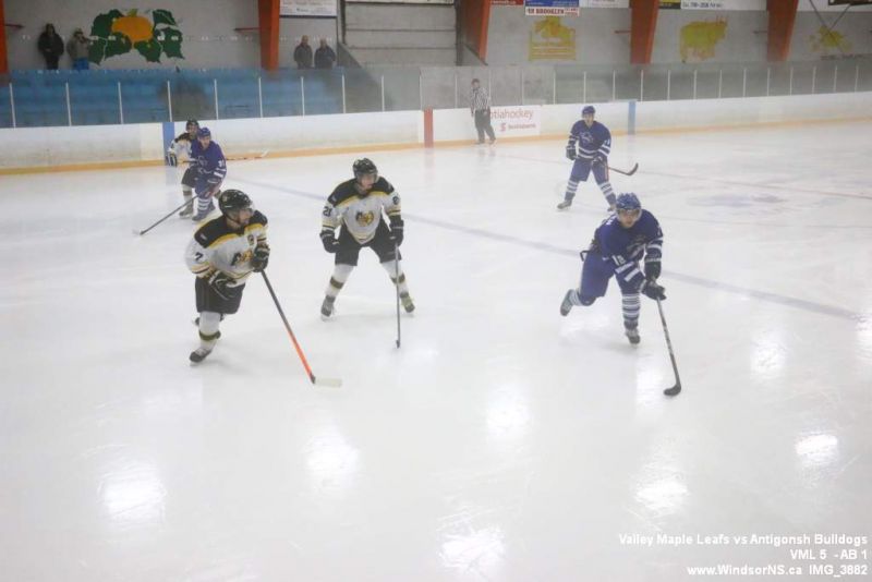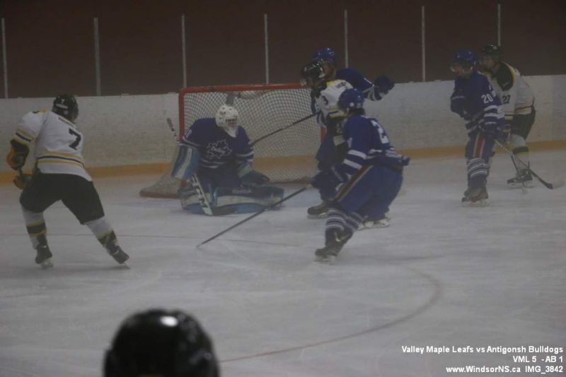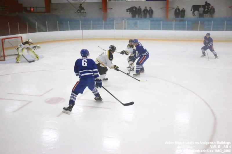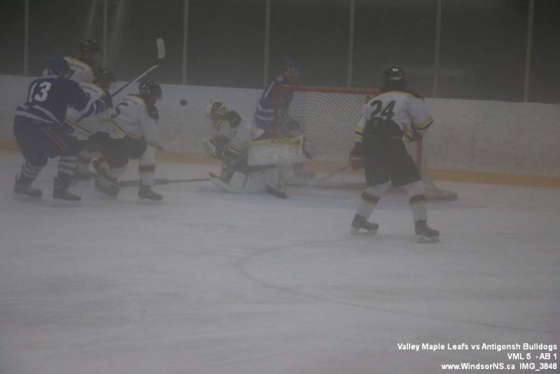 Nov 6, 2015, Windsor NS Valley Maple Leafs were victorious Friday night in a game at home against the Antigonish Bulldogs. With fog covering the ice throughout the game it was difficult to follow the puck. Valley Maple Leafs (5) took the win over the Antigonish Bulldogs (1).
