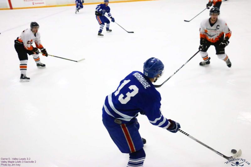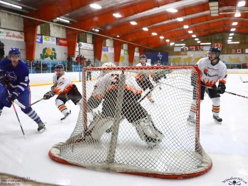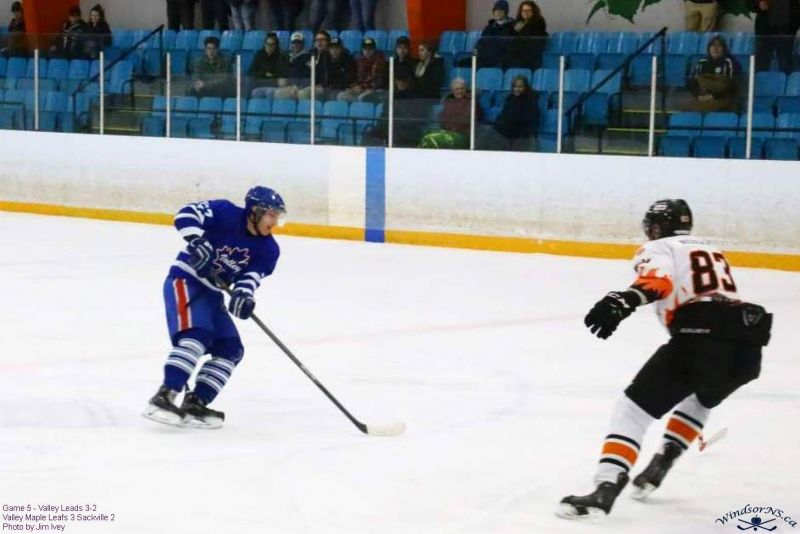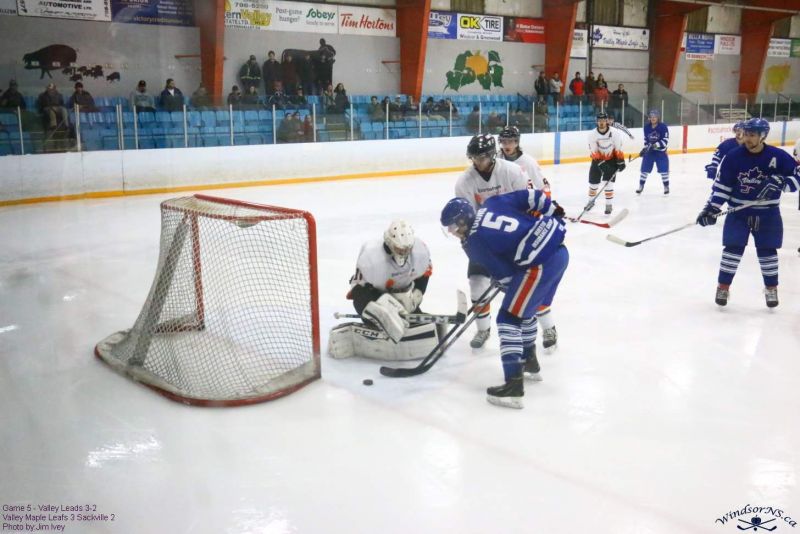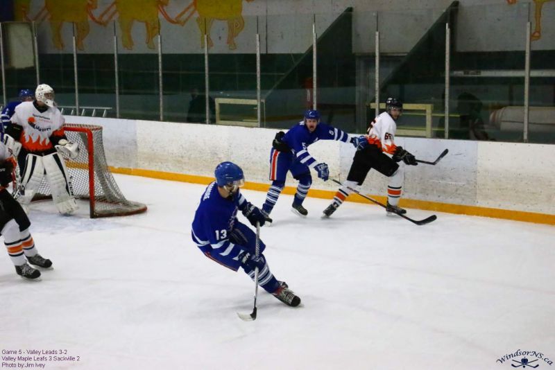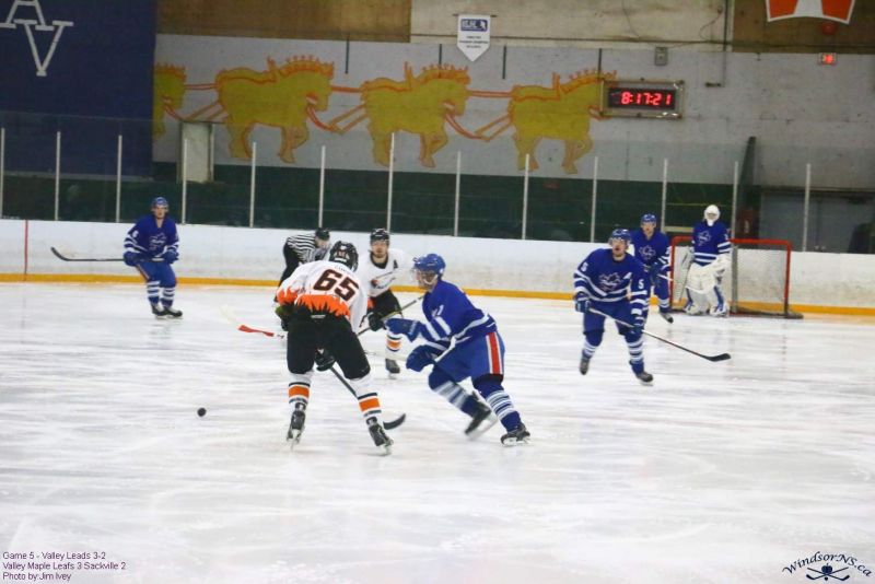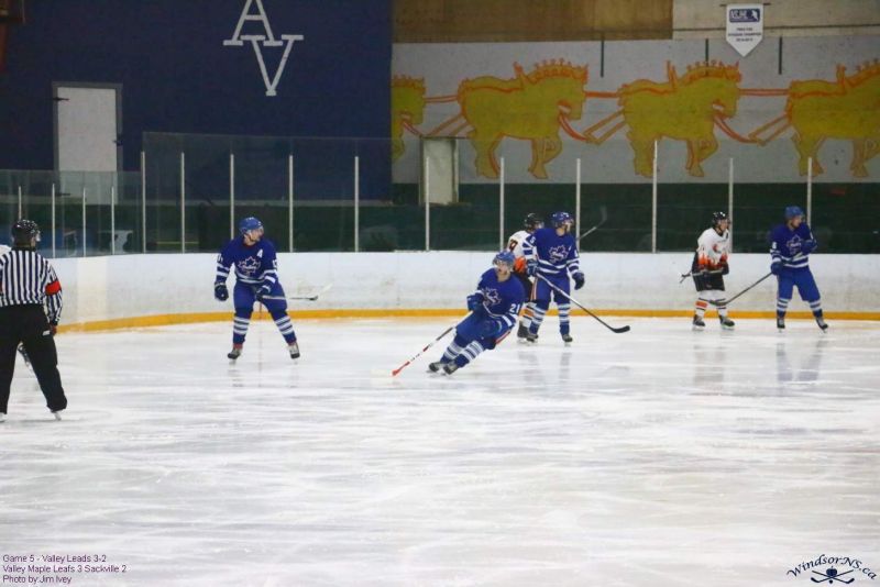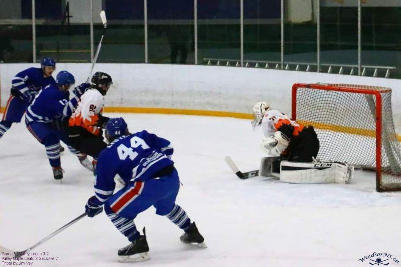 In a close and tightly contested game on Sunday evening the Valley Maple Leafs pulled out a 3 to 2 victory over the Sackville Blazers. Valley Maple Leafs now lead the series 3 games to 2.